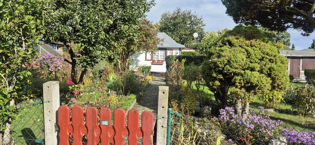 Garten steht für eine Nutzung bereit. Laube ist sanierungsbedürftig.